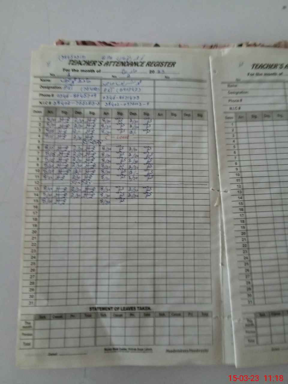 | Name: HA**** MU**** HA**** Designation: (School Headmaster's/Headmistress's) PST Phone/Cell Number: 03**** |