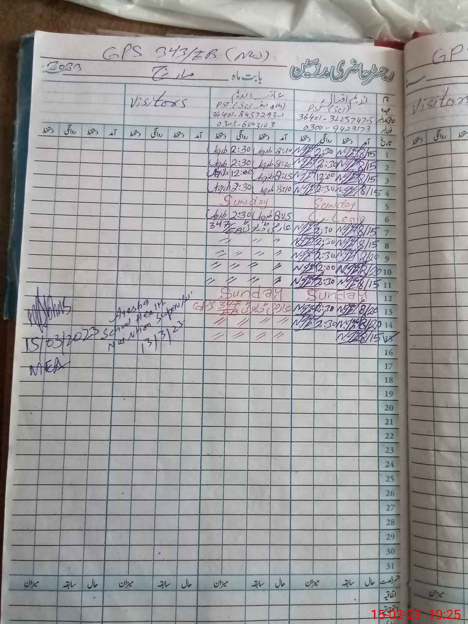 | Name: AA**** NA**** Designation: (School Headmaster's/Headmistress's) PST Phone/Cell Number: 03**** |