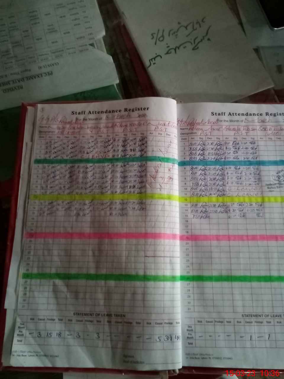 | Leave | Duty | Absent | Maternity | Medical | Ex- Pak |