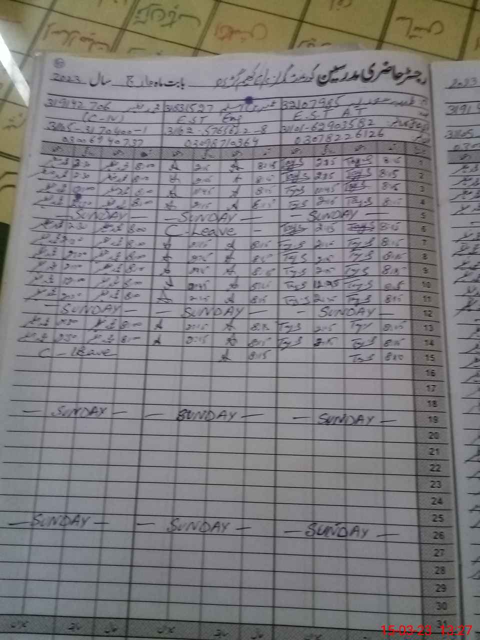 | CNIC | Full Name | Designation | R/C | Absence During Last Calender Month |