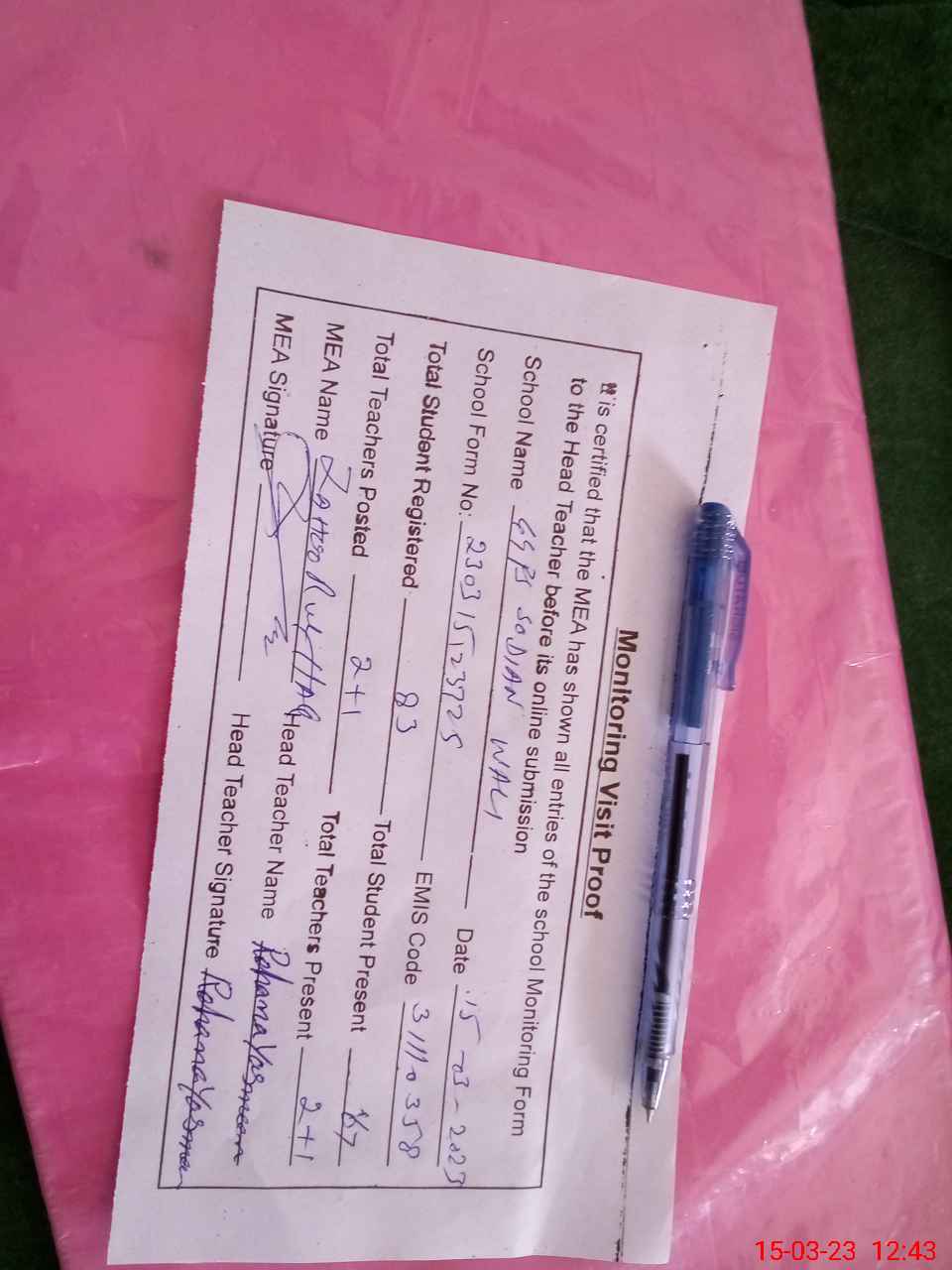 | EMIS Code: 31110358 | Name of School: GGPS SODIAN WALI | |||