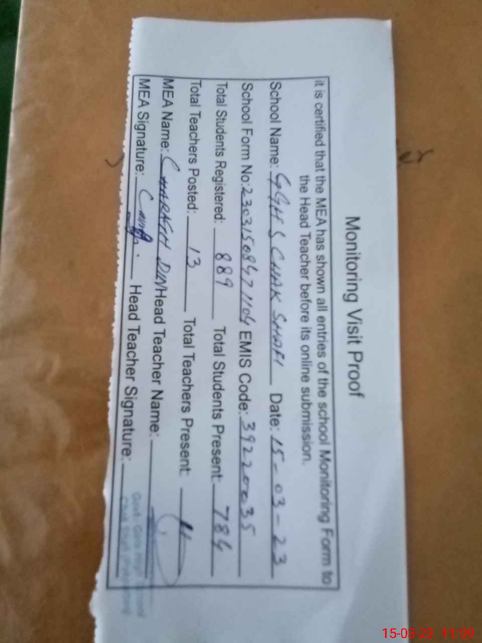 | EMIS Code: 39220035 | Name of School: GGHS CHAK SHAFI | |||