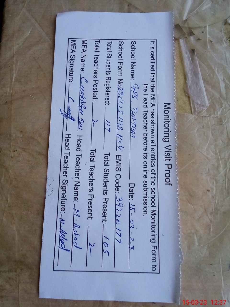 | EMIS Code: 39220177 | Name of School: GPS THATHAI P/O SAME TEH ARIF WALA | |||