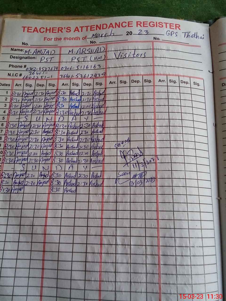 | Name: MU**** AR**** Designation: (School Headmaster's/Headmistress's) PST Phone/Cell Number: 03**** |
