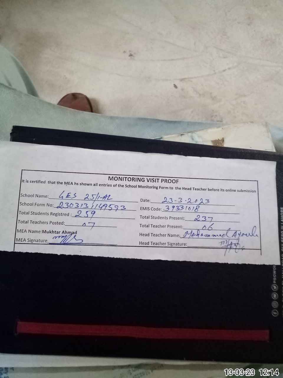 | EMIS Code: 39331018 | Name of School: GES CHAK 25/1-AL | |||