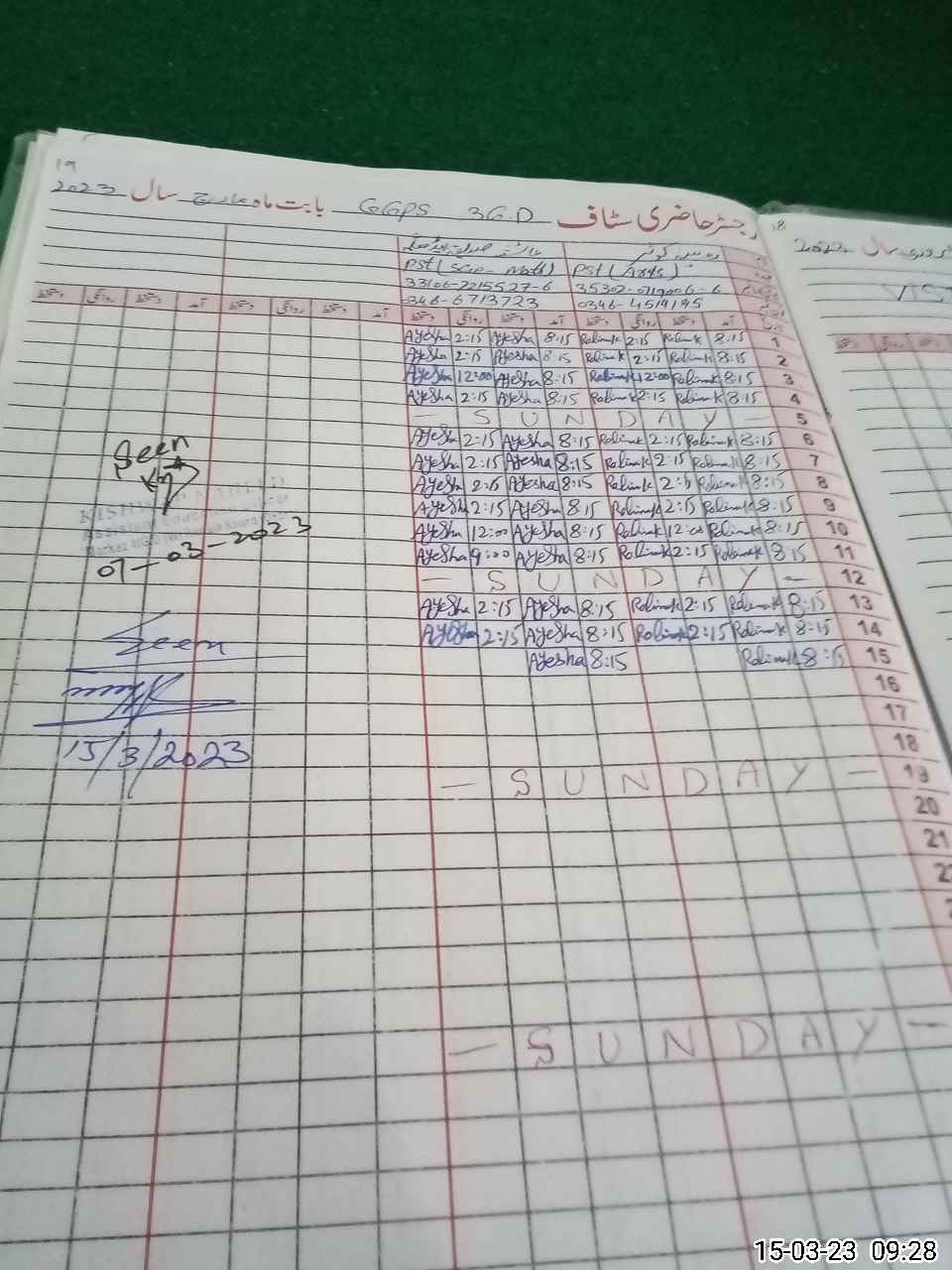 | Name: AY**** SA**** Designation: (School Headmaster's/Headmistress's) PST Phone/Cell Number: 03**** |