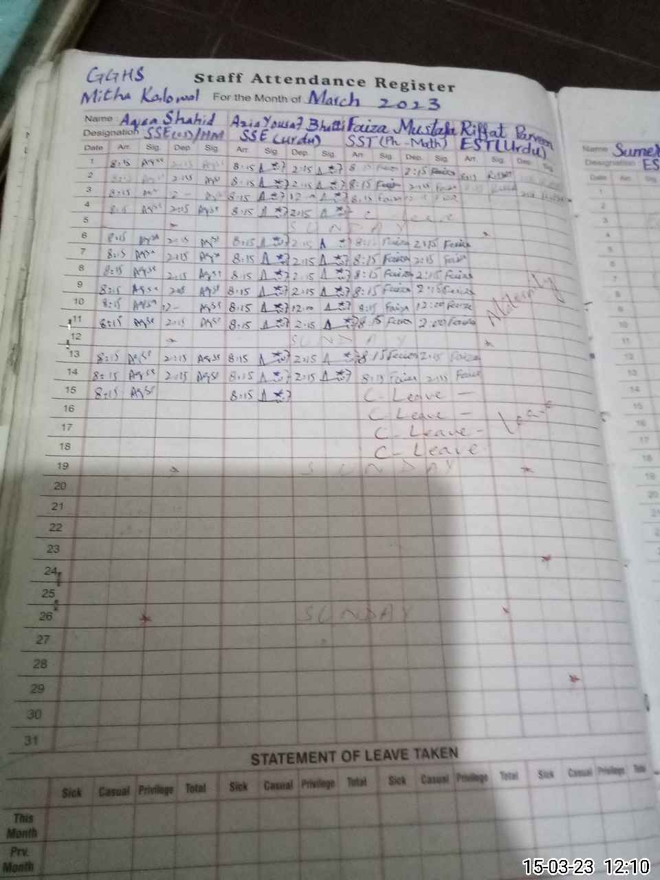 | 35**** | An**** Sa**** | PST | Regular | 7 | 0 | 0 | 0 | 0 | 0 | 0 | 0 | 7 | Maternity |