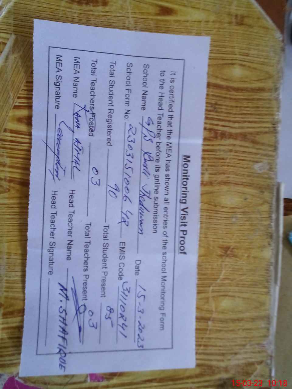 | EMIS Code: 31110241 | Name of School: GPS BASTI JHADUWAN | |||