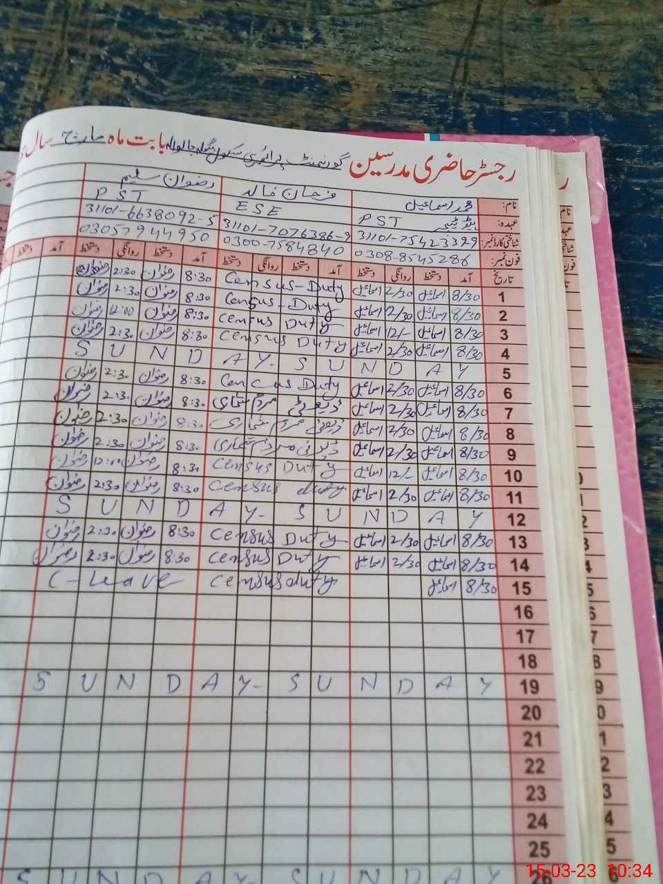 | Name: MU**** IS**** Designation: (School Headmaster's/Headmistress's) PST Phone/Cell Number: 03**** |