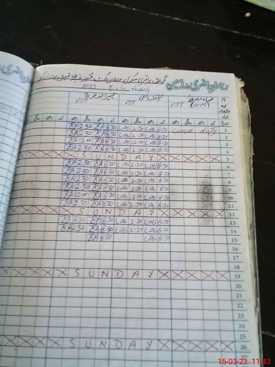 | CNIC | Full Name | Designation | R/C | Absence During Last Calender Month |