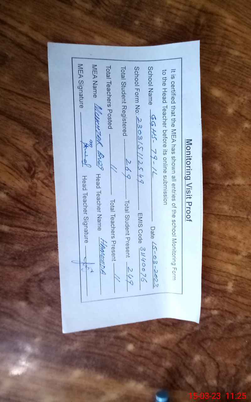 | EMIS Code: 31140076 | Name of School: GGHS 79/1-L HAROON ABAD | |||