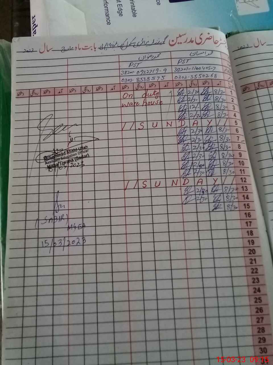 | Name: Mu**** Wa**** Designation: (School Headmaster's/Headmistress's) PST Phone/Cell Number: 03**** |