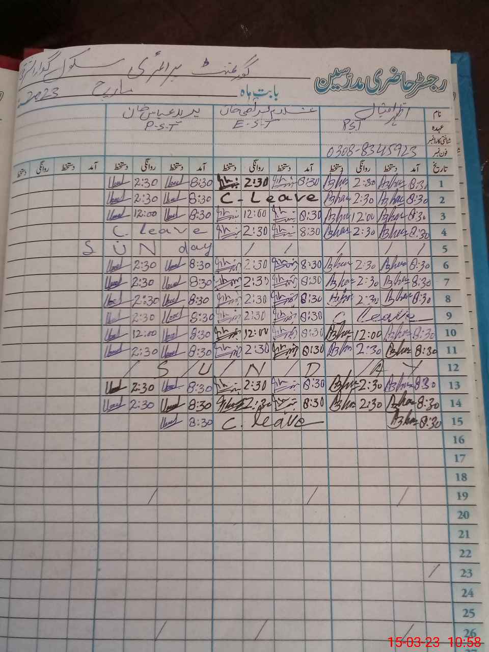 | Name: Ur**** Ab**** Designation: (School Headmaster's/Headmistress's) PST Phone/Cell Number: 03**** |