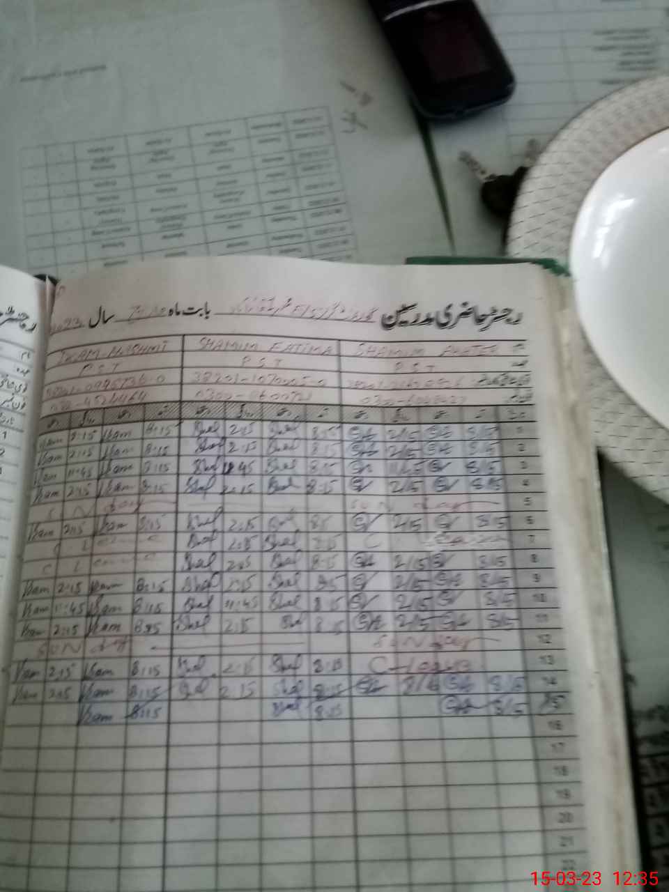 | CNIC | Full Name | Designation | R/C | Absence During Last Calender Month |