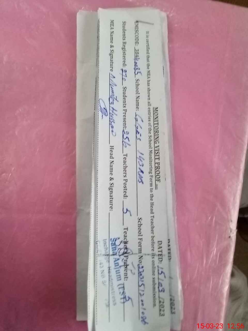 | Certified that this School was Inspected by the Undersigned MEA/DMO Today and the Information Stated Above is as Per Record. | |||||