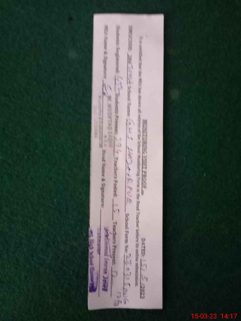 | Monitoring Date: 15-03-2023 | Start Time: 15-03-2023 01:30 PM | End Time: 15-03-2023 02:20 PM | Name of MEA: MU**** MU**** SA**** | |