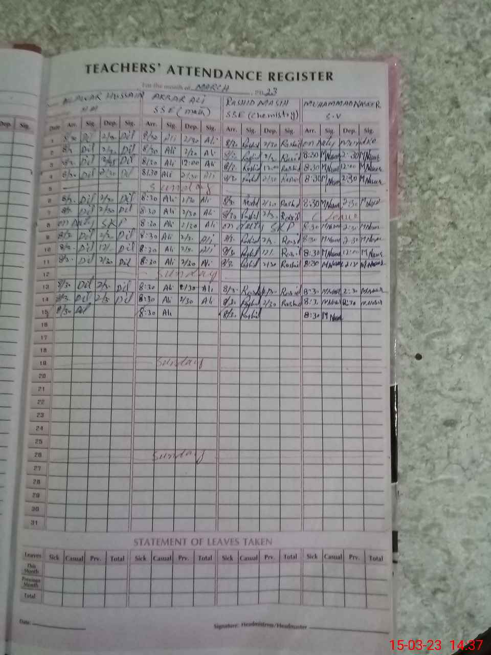 | Name: Al**** Us**** Ma**** Designation: (School Headmaster's/Headmistress's) H M ( I C) Phone/Cell Number: 03**** |