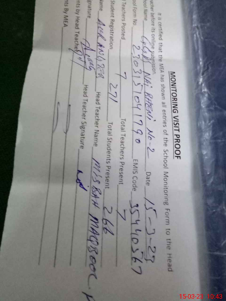 | EMIS Code: 35440567 | Name of School: GGPS NAI BHANI NO.2 | |||
