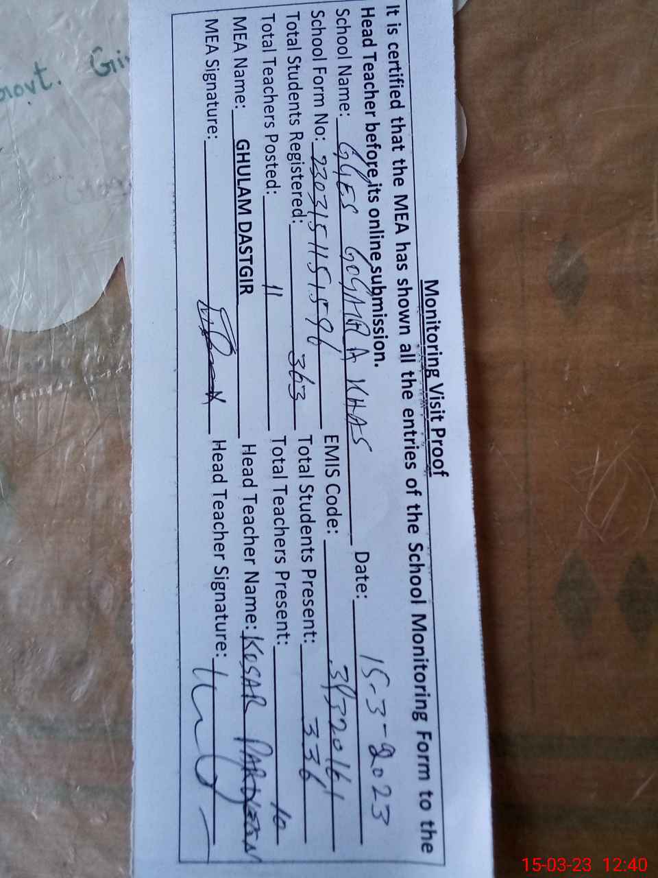 | EMIS Code: 39320161 | Name of School: GGES GOGERA KHAS | |||