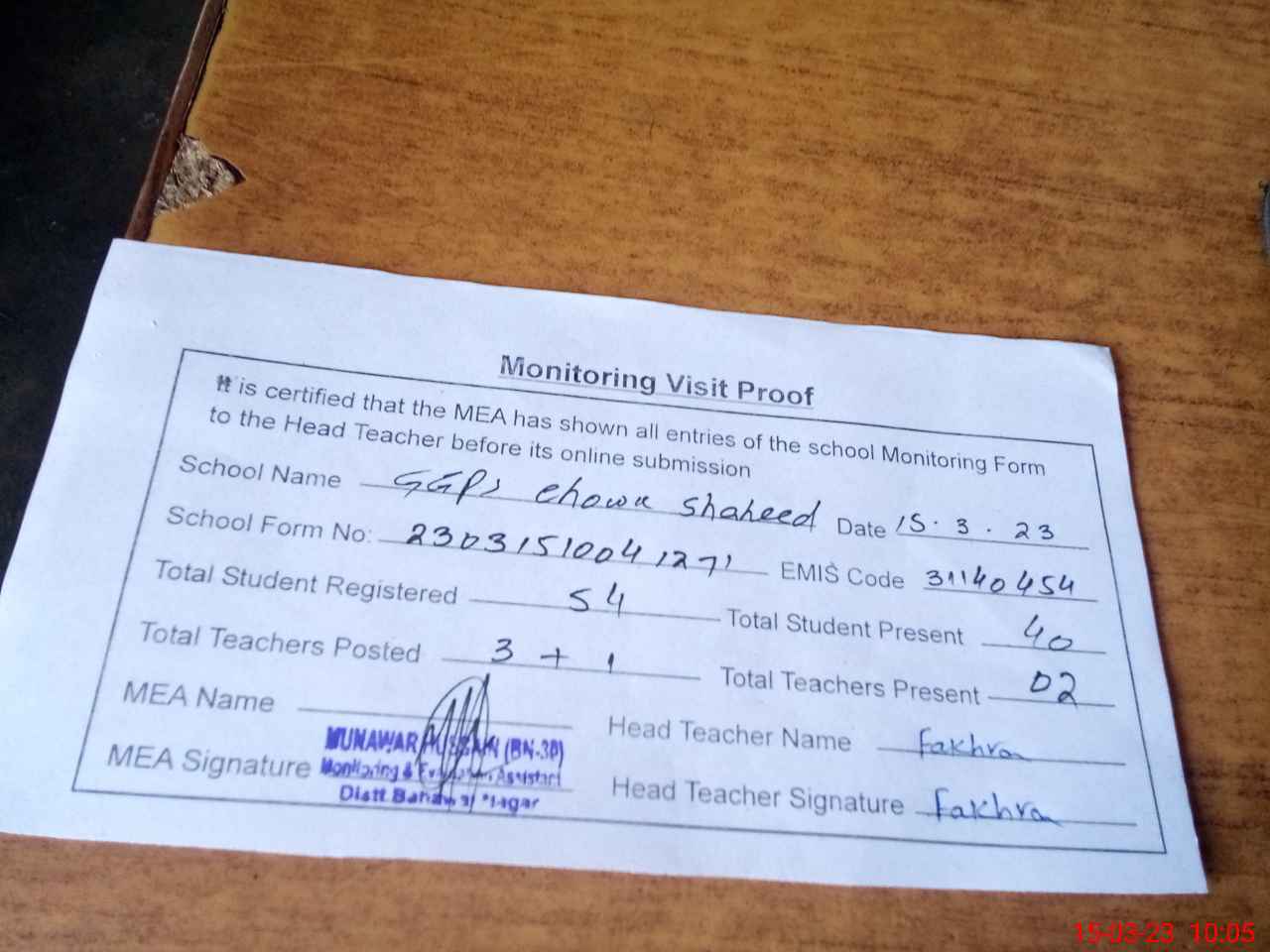 | EMIS Code: 31140454 | Name of School: GGPS CHOWK SHAHEED | |||