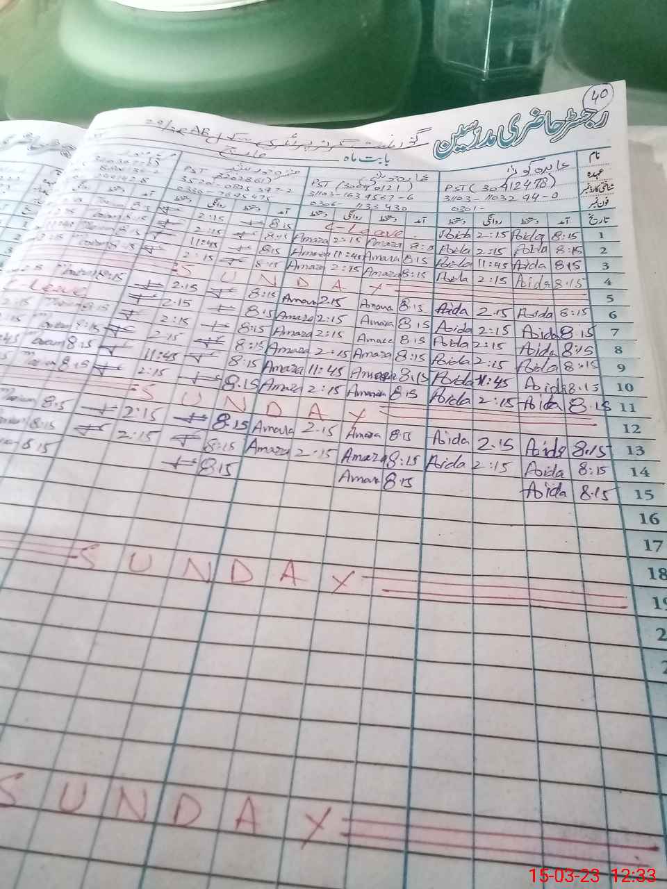 | CNIC | Full Name | Designation | R/C | Absence During Last Calender Month |