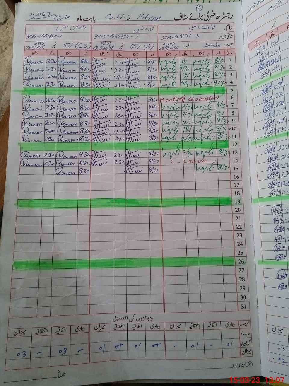 | CNIC | Full Name | Designation | R/C | Absence During Last Calender Month |