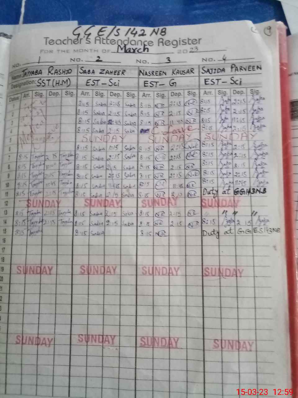 | Monitoring Date: 15-03-2023 | Start Time: 15-03-2023 12:28 PM | End Time: 15-03-2023 01:15 PM | Name of MEA: MU**** AS**** (R**** | |