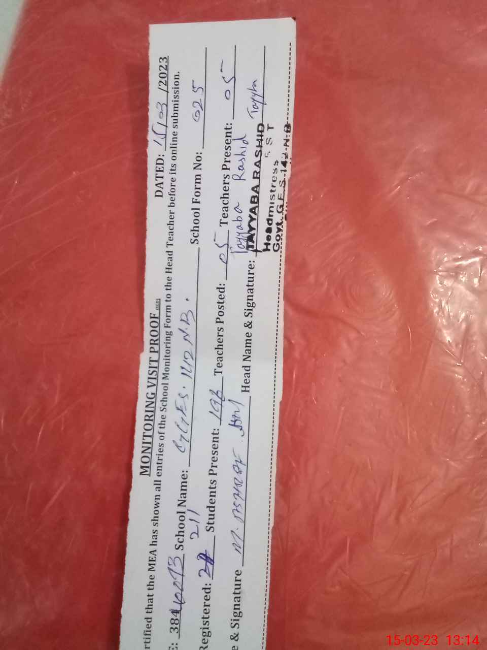 | Attendance Register | Head Teacher | MEA with School | Visit Proof |