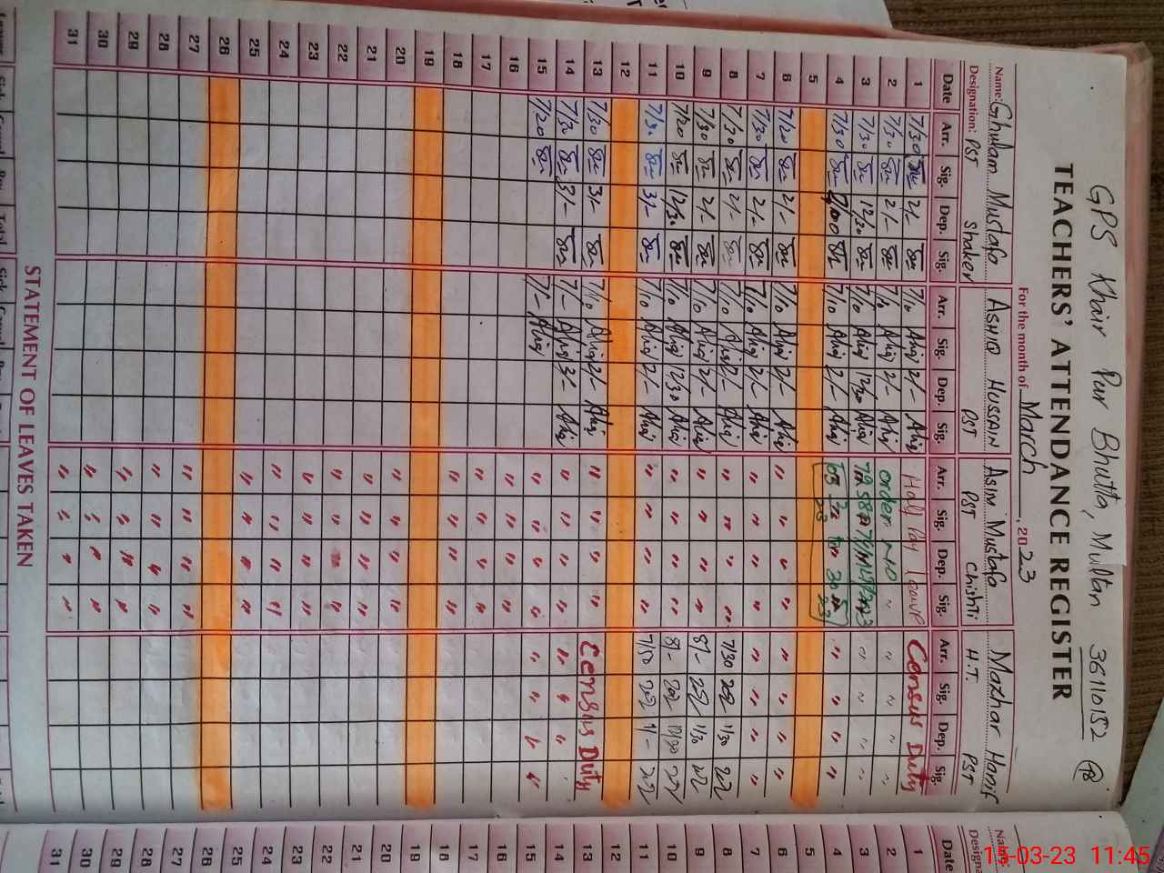 | Name: Ma**** Ha**** Designation: (School Headmaster's/Headmistress's) PST Phone/Cell Number: 03**** |