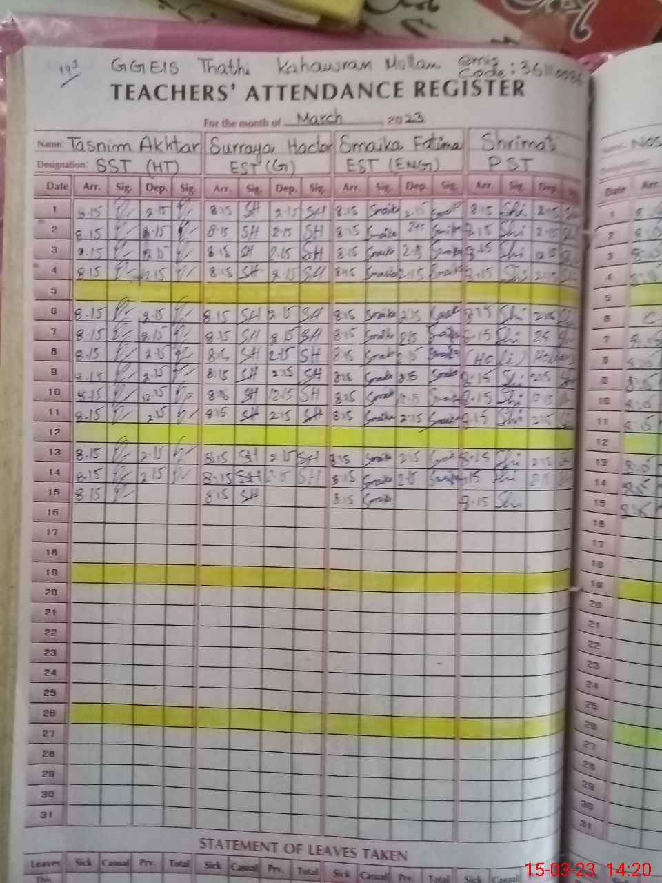 | Name: TA**** AK**** Designation: (School Headmaster's/Headmistress's) S.S.T.(arts ) Phone/Cell Number: 03**** |