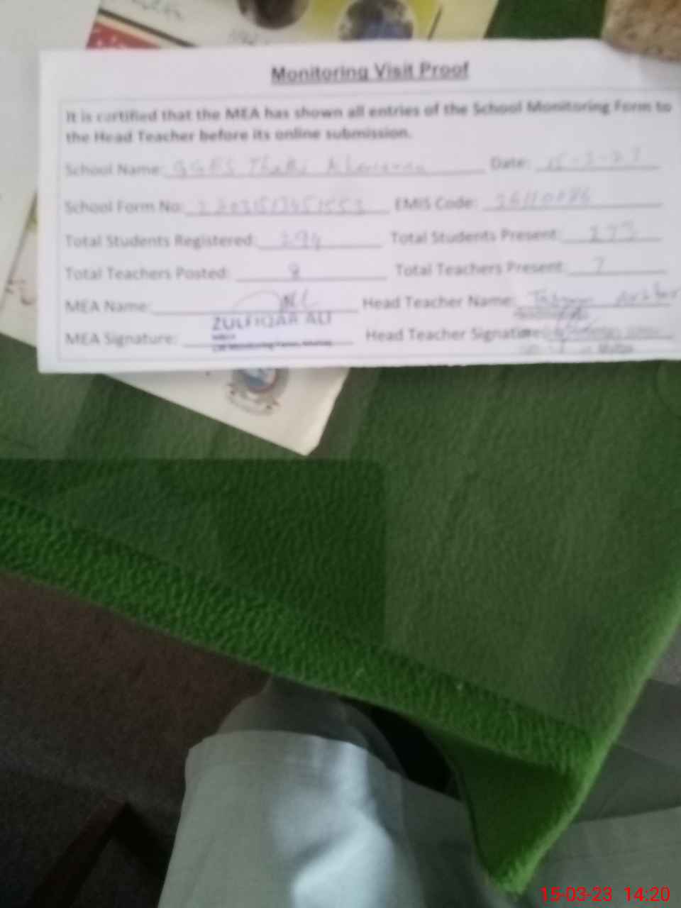 | EMIS Code: 36110086 | Name of School: GGES THATHI KHAHWARAN NEAR BIG CANAL MUZAFFAR ABAD | |||