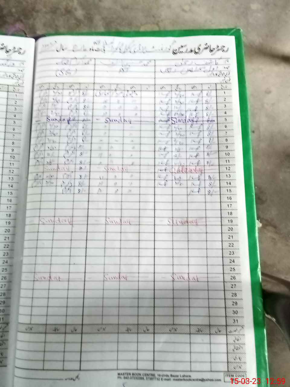 | CNIC | Full Name | Designation | R/C | Absence During Last Calender Month |