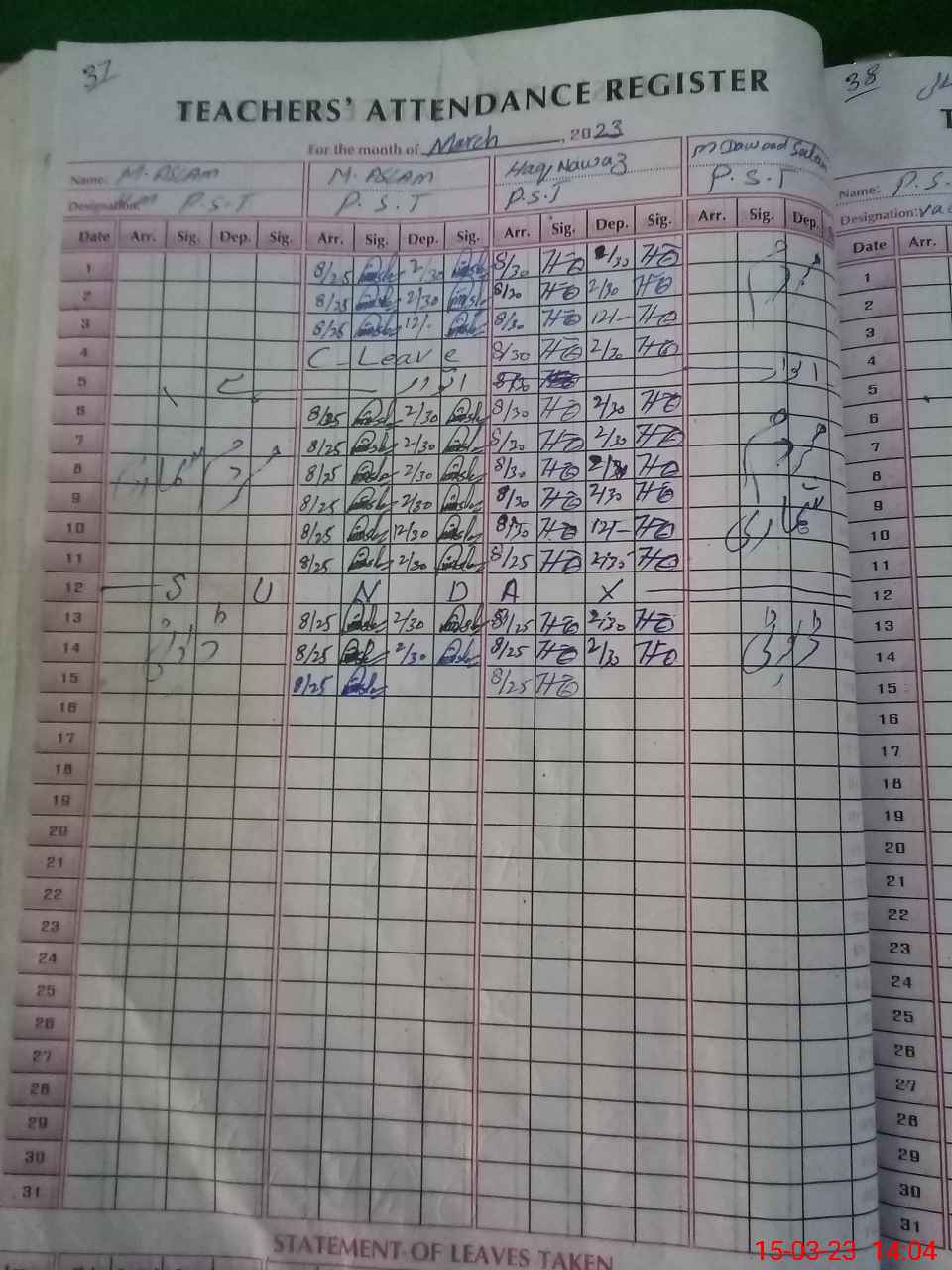 | Leave | Duty | Absent | Maternity | Medical | Ex- Pak |