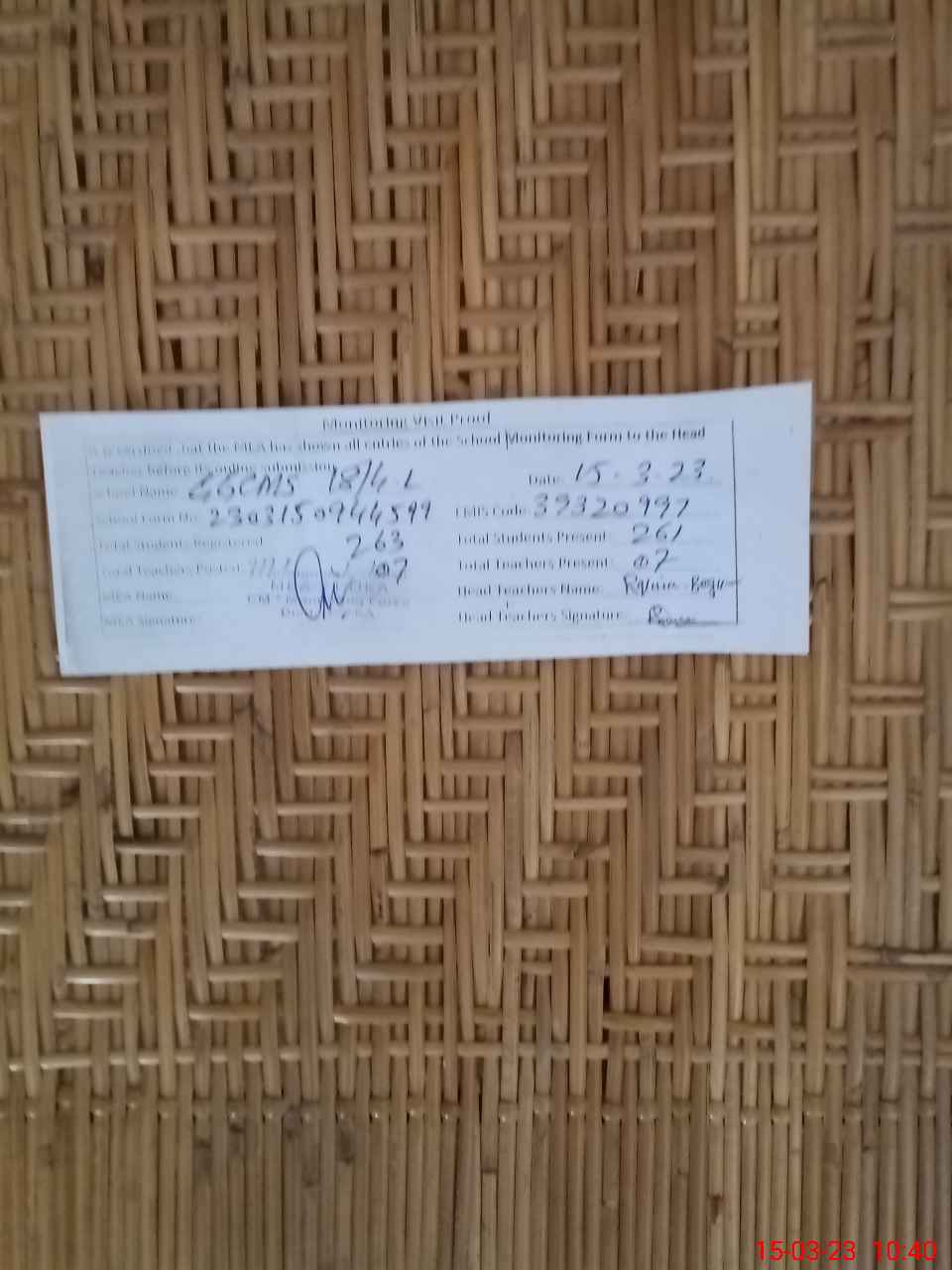 | Attendance Register | Head Teacher | MEA with School | Visit Proof |