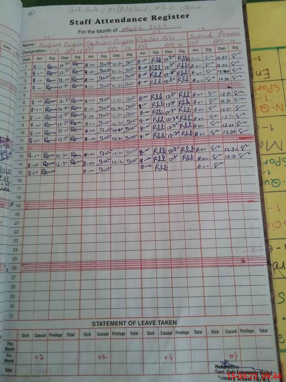 | Name: RU**** BE**** Designation: (School Headmaster's/Headmistress's) S.S.T.(Arts) Phone/Cell Number: 03**** |