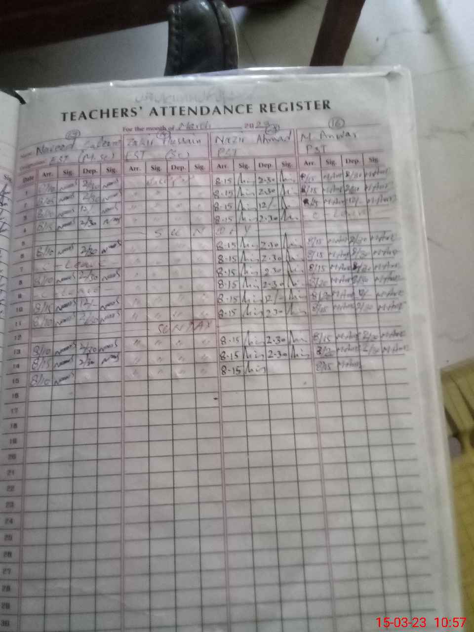 | CNIC | Full Name | Designation | R/C | Absence During Last Calender Month |