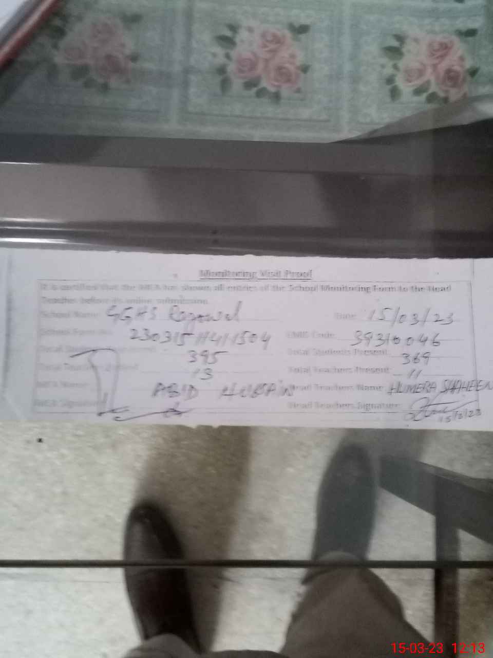 | Name: HU**** SH**** Designation: (School Headmaster's/Headmistress's) H M Phone/Cell Number: 03**** |