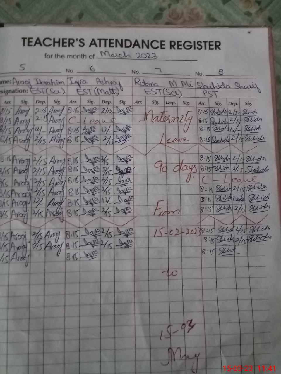 | 35**** | Ro**** MAl**** | Regular | 14 | 0 | 0 | 14 | 0 | 0 | 0 | 0 | 0 | Maternity | |