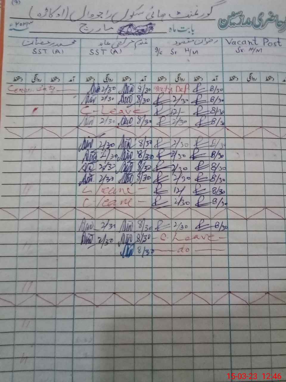 | CNIC | Full Name | Designation | R/C | Absence During Last Calender Month |