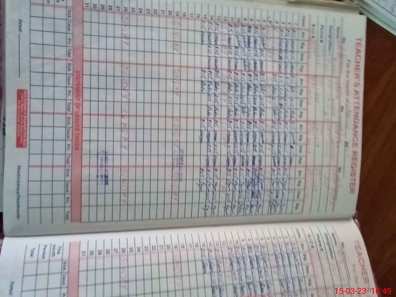 | Name: RE**** MU**** Designation: (School Headmaster's/Headmistress's) EST Phone/Cell Number: 03**** |