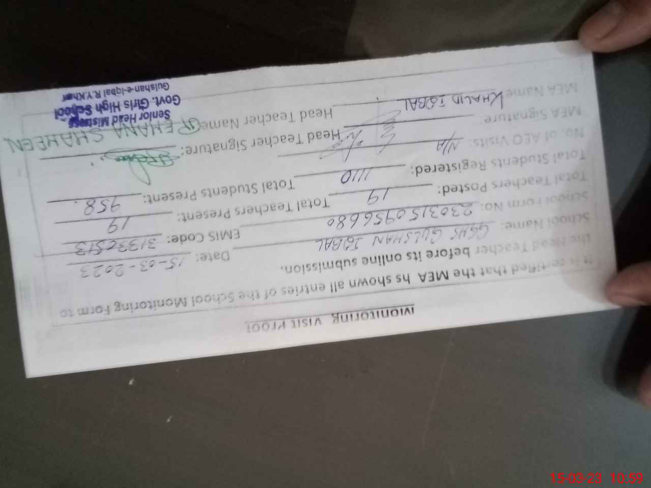 | EMIS Code: 31330513 | Name of School: GGHS GULSHAN IQBAL | |||