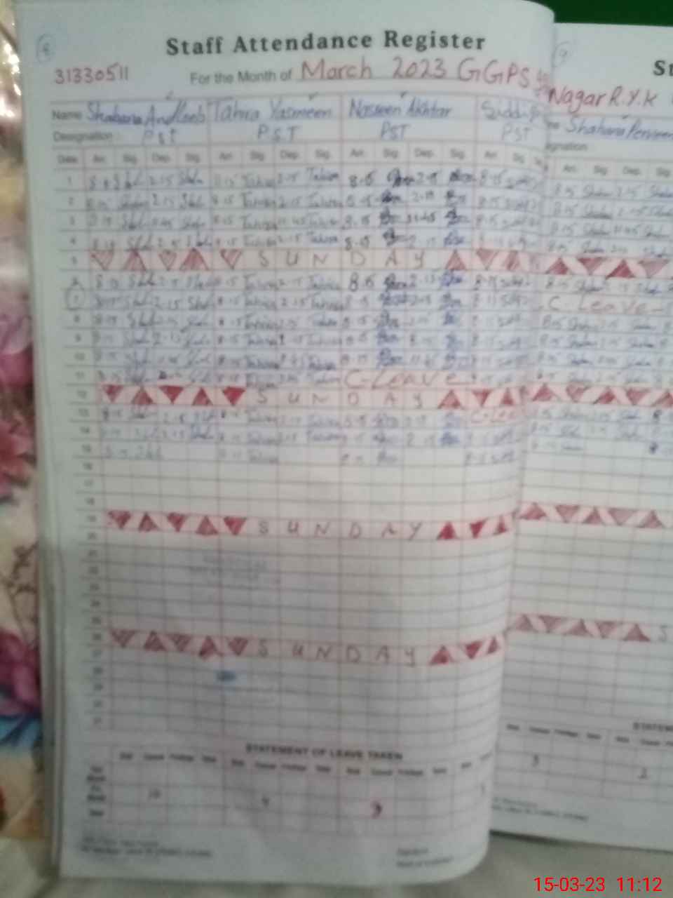 | Leave | Duty | Absent | Maternity | Medical | Ex- Pak |