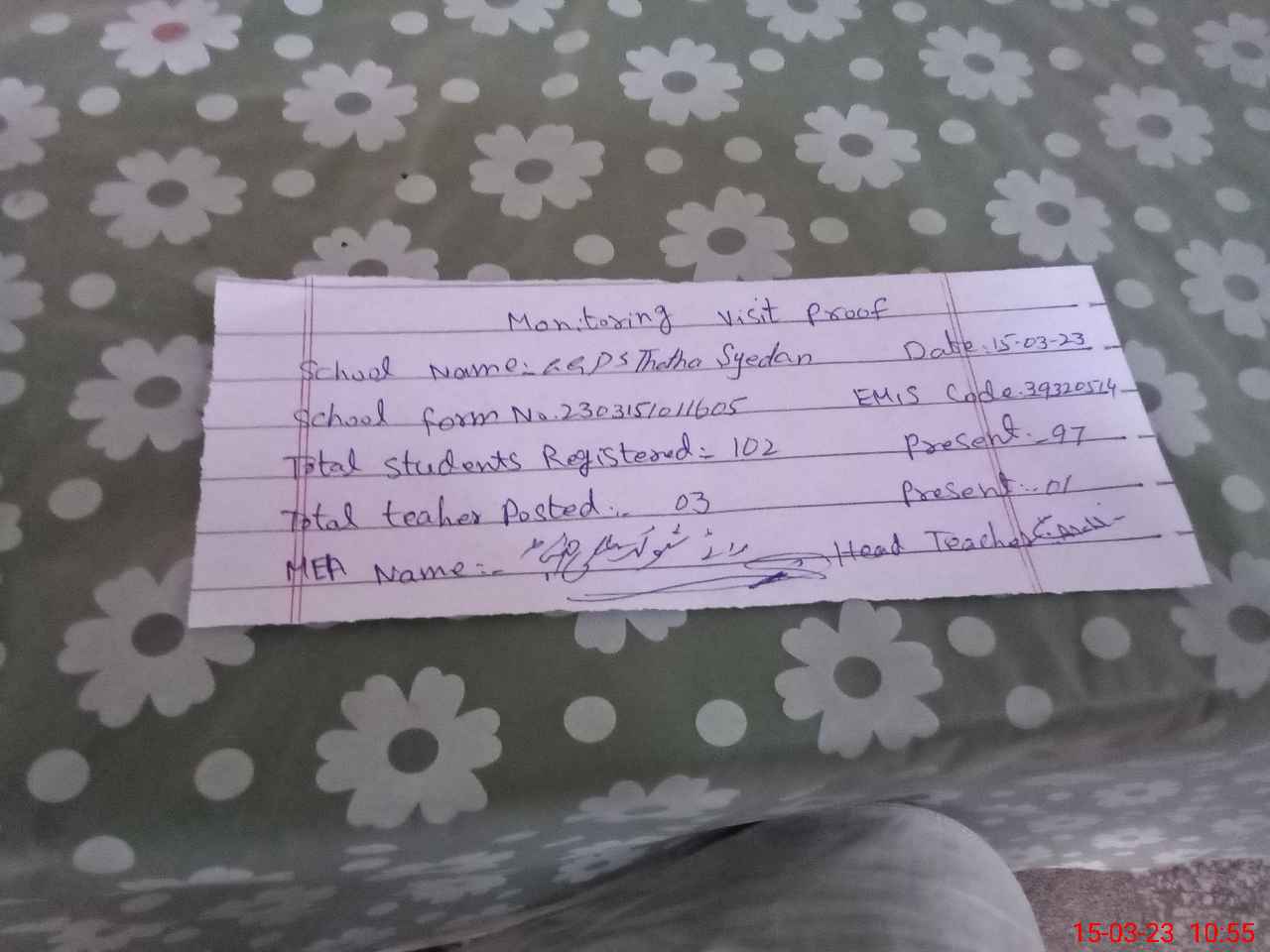 | EMIS Code: 39320514 | Name of School: GGPS THATA SYEDAN | |||