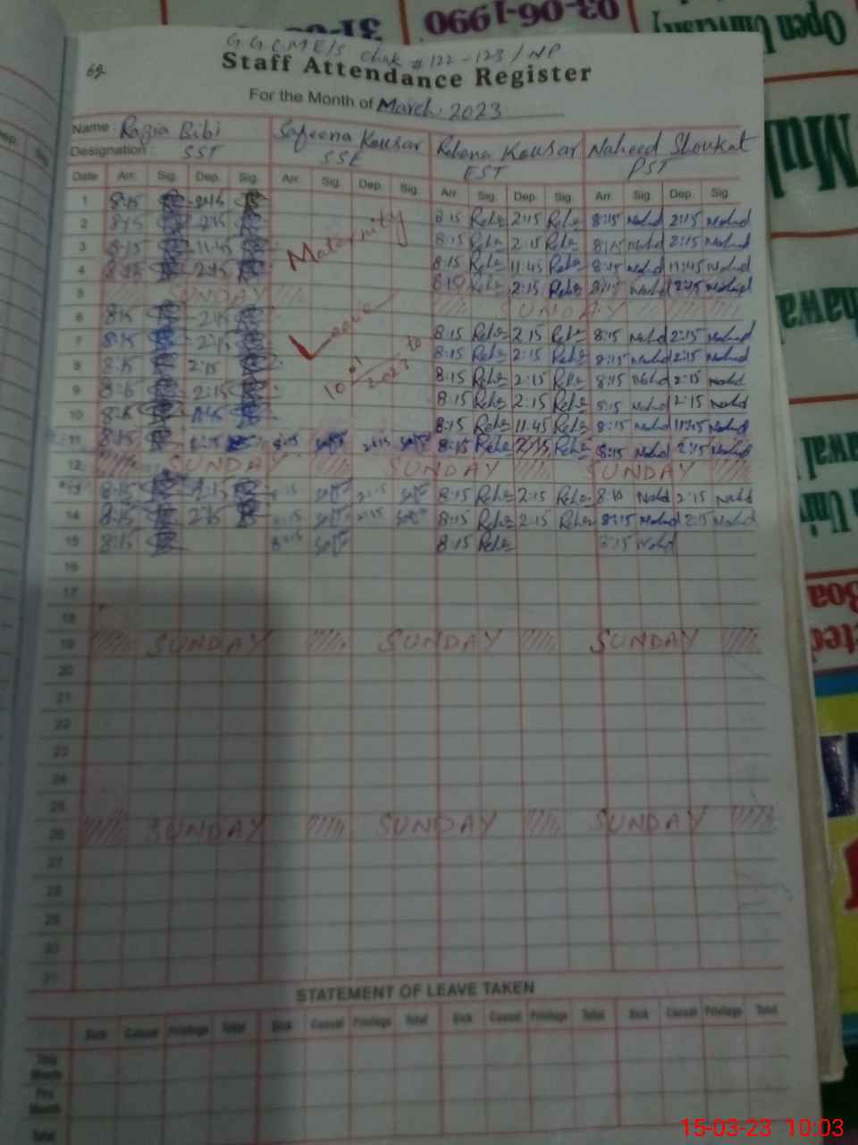 | Leave | Duty | Absent | Maternity | Medical | Ex- Pak |