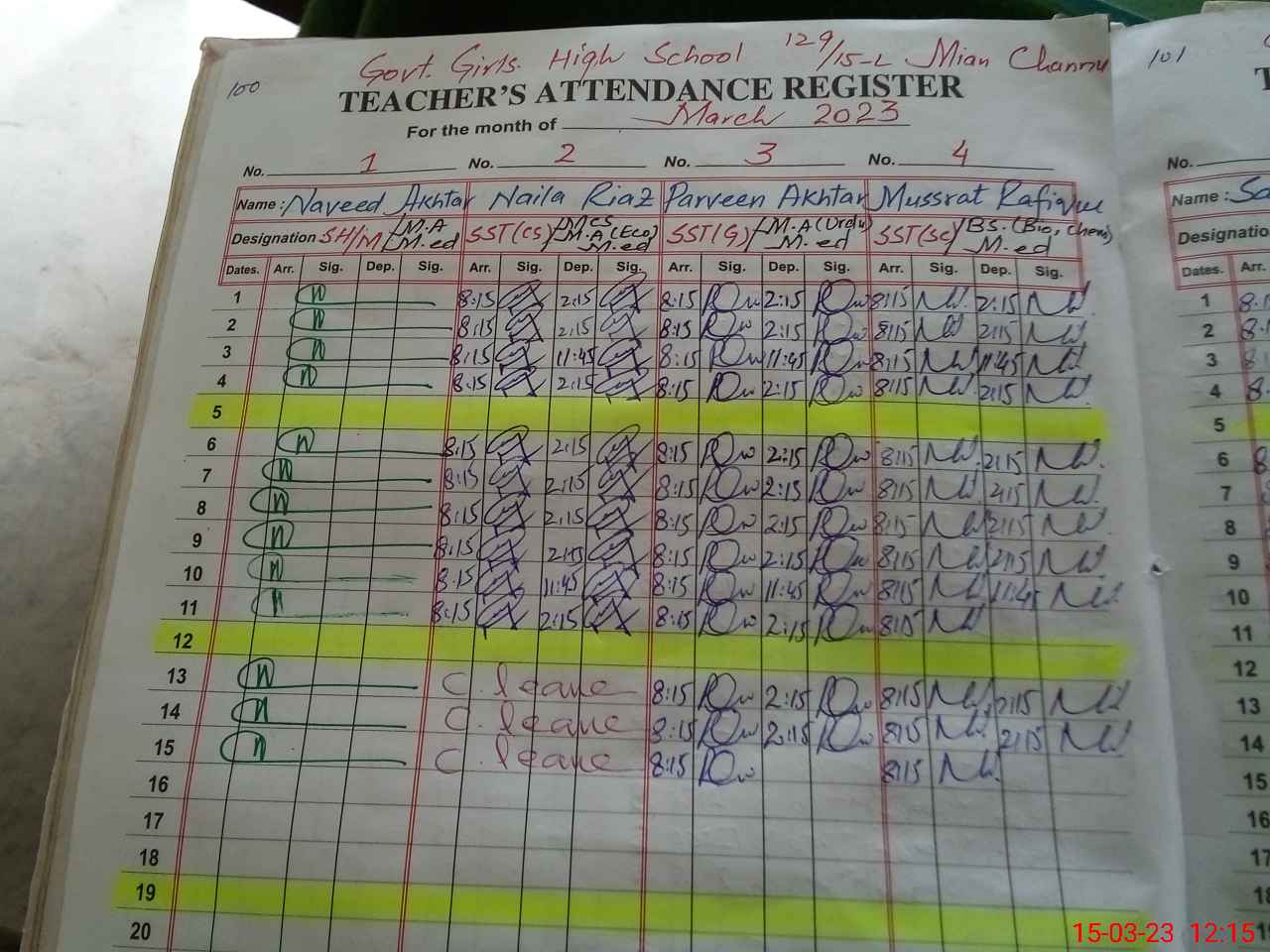 | CNIC | Full Name | Designation | R/C | Absence During Last Calender Month |