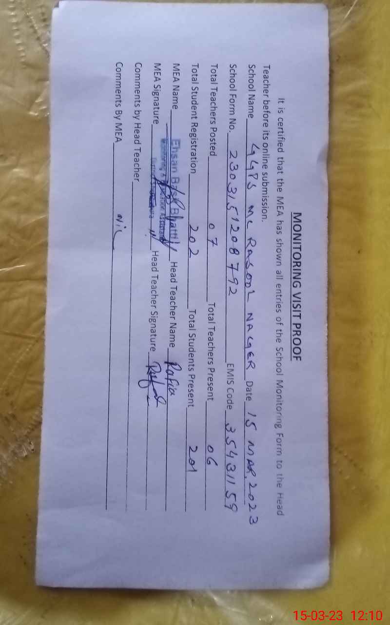 | EMIS Code: 35431159 | Name of School: GGPS MC RASOOL NAGAR | |||