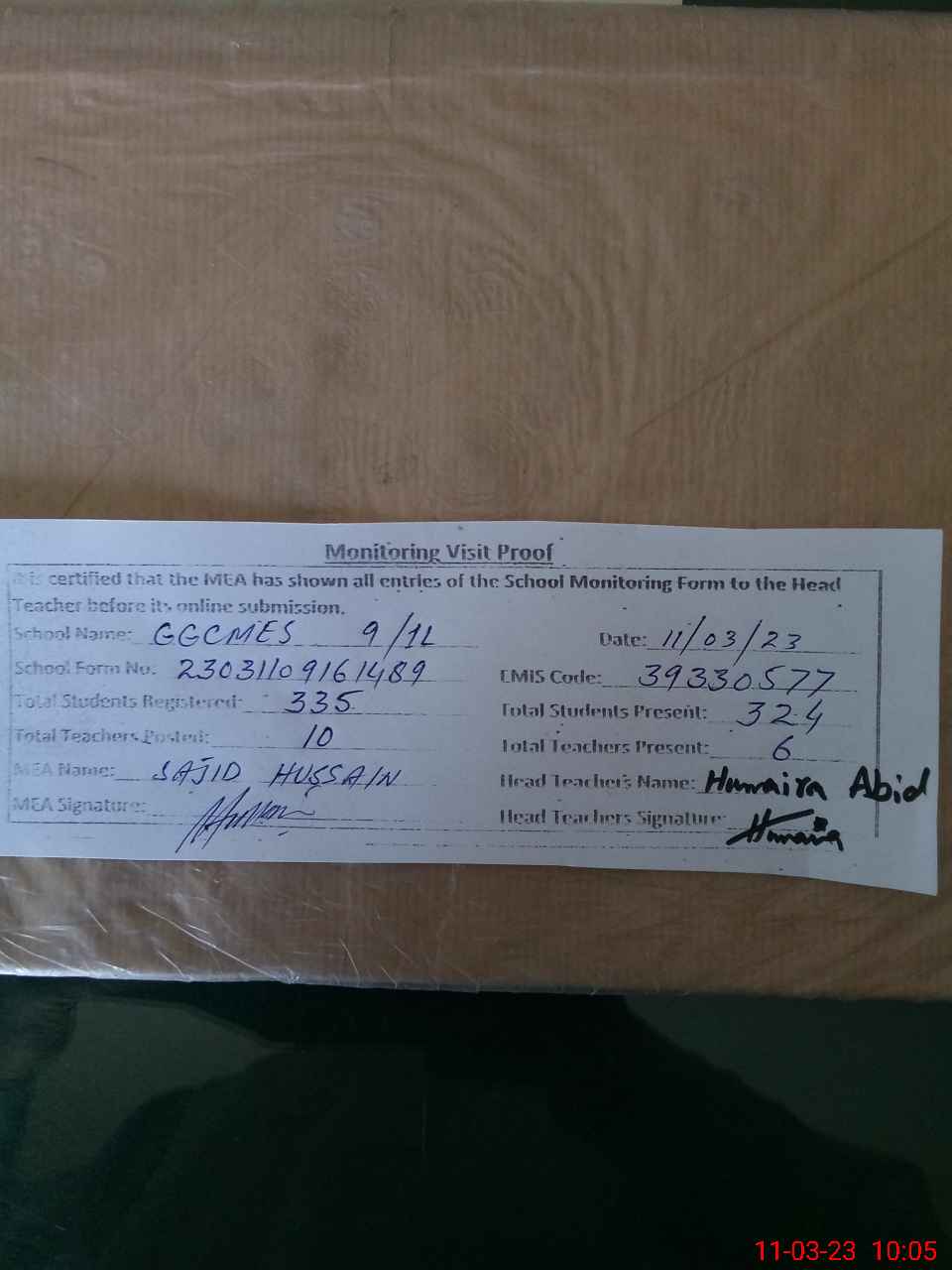 | EMIS Code: 39330577 | Name of School: GGCMES CHAK NO. 9/1-L | |||