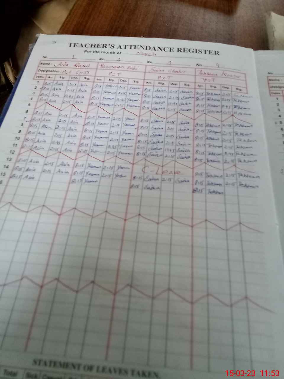 | Leave | Duty | Absent | Maternity | Medical | Ex- Pak |