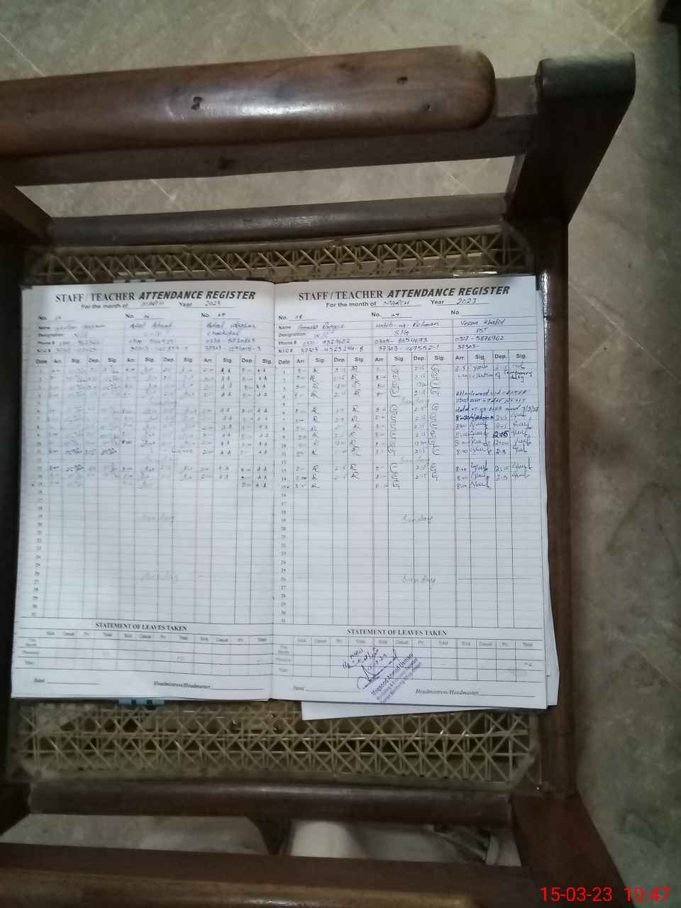 | Name: Gh**** An**** Designation: (School Headmaster's/Headmistress's) PRINCIPAL Phone/Cell Number: 03**** |
