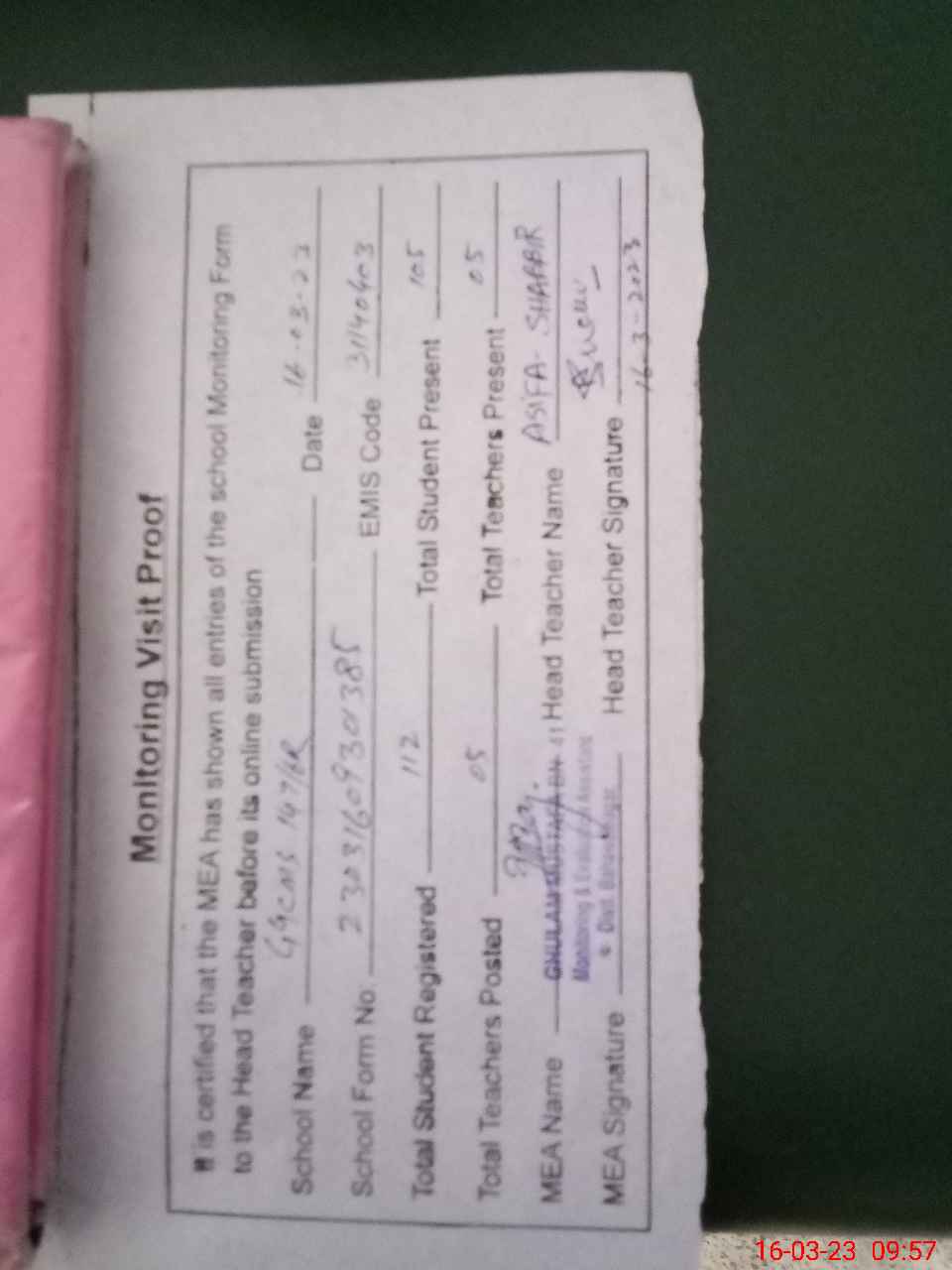 | EMIS Code: 31140403 | Name of School: GGCMS CHAK NO.147/6-R | |||